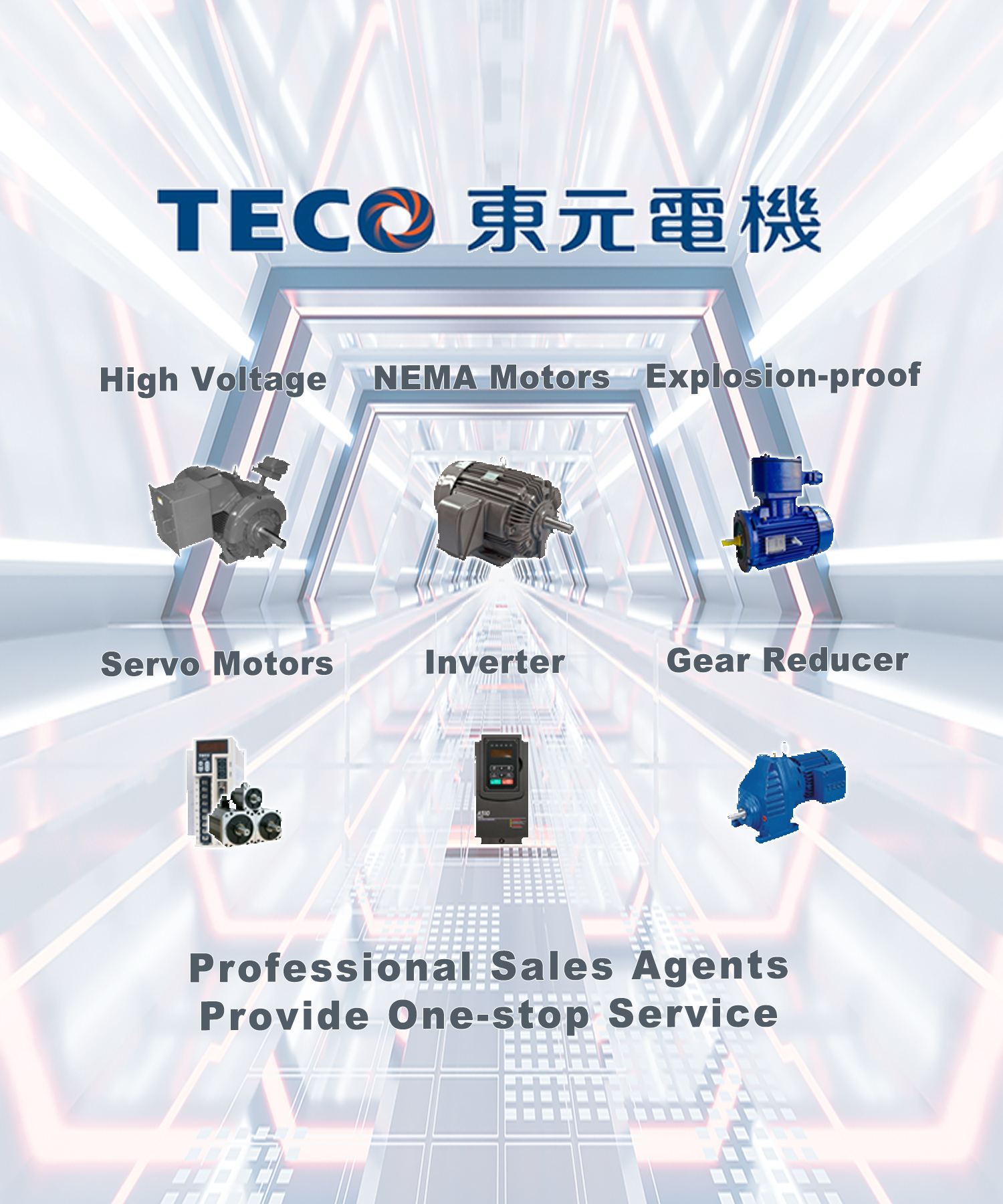 TECO is a famous globalize enterprise group, share the forefront in global industrial motor of the world; and it has successfully diversified into a highly competitive development conglomerate with worldwide business operations including heavy electrical, home appliance, electronics, IT system, telecommunications equipment, financial investment from the motor giant enterprises. TECO Group currently has nearly hundred oversea affiliates and subsidiaries, and the total global employee amount is over tens of thousands. It has a wide range technology cooperation with many world famous enterprises, such as GE, Japan Yaskawa, the U.S. Westinghouse, Siemens of Germany, Japan, Hitachi, Mitsubishi and so on, its business territory has been extended to Asia, America, Europe, Australia, and became known as a well-known World Group, TECO had become an international brand.